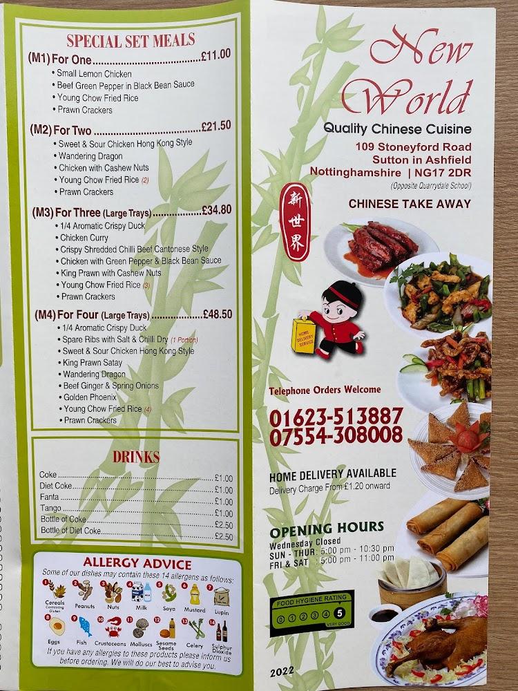 New World sits on Stoneyford Road in Sutton-in-Ashfield, an area known for its friendly vibe and community spirit. The restaurant stands out with a simple yet welcoming facade, where residents gather for some of the best Chinese takeaway around. The atmosphere is casual, perfect for dining in or grabbing food to go. Free street parking makes it easy for those who prefer to pick up their meals, enhancing the experience of enjoying great food without the hassle. Open every day of the week, it's a reliable choice for dinner. Regular customers appreciate the ability to place reservations, ensuring they get their favorite meal without any wait time. It's not just about the food; it's about connecting with the community over a shared love for great Chinese cuisine.